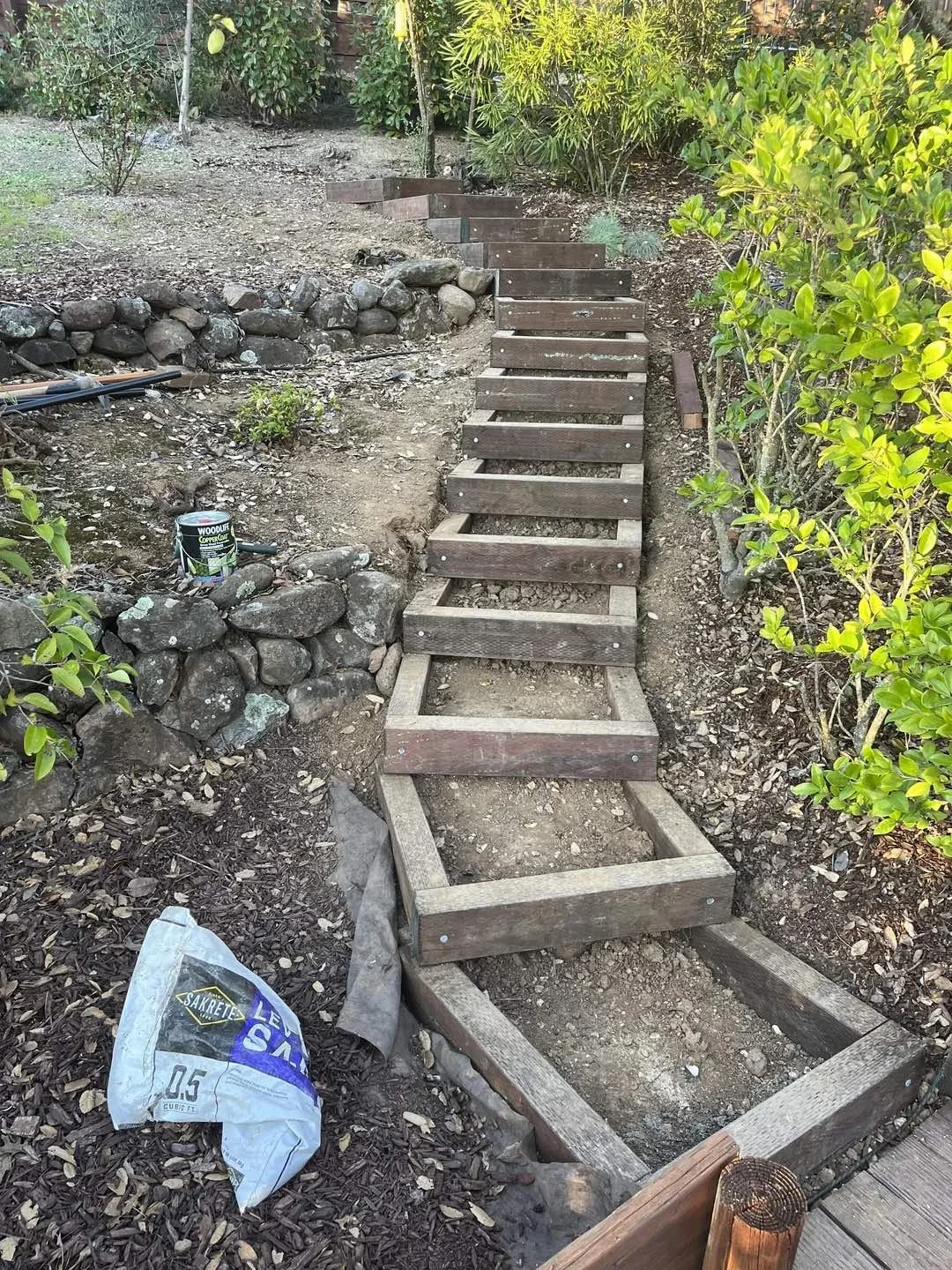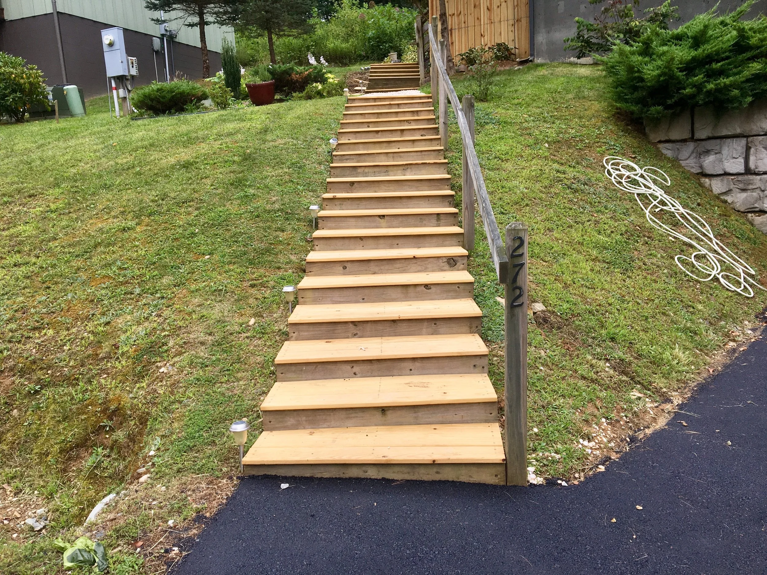 I bought my first house in 2016, just as I was concluding my first year teaching at Appalachian State University. It was a great little house and in excellent shape, but it did have particularly treacherous stairs leading up to the front (and only) door. Google tells me these stairs were called “box frame stairs” and were a set of 23 wooden-framed stairs built into a hill and empty in the middle, making them sturdy and functional, but dangerous. They looked a bit like this (not my actual stairs, but a similar representation):
